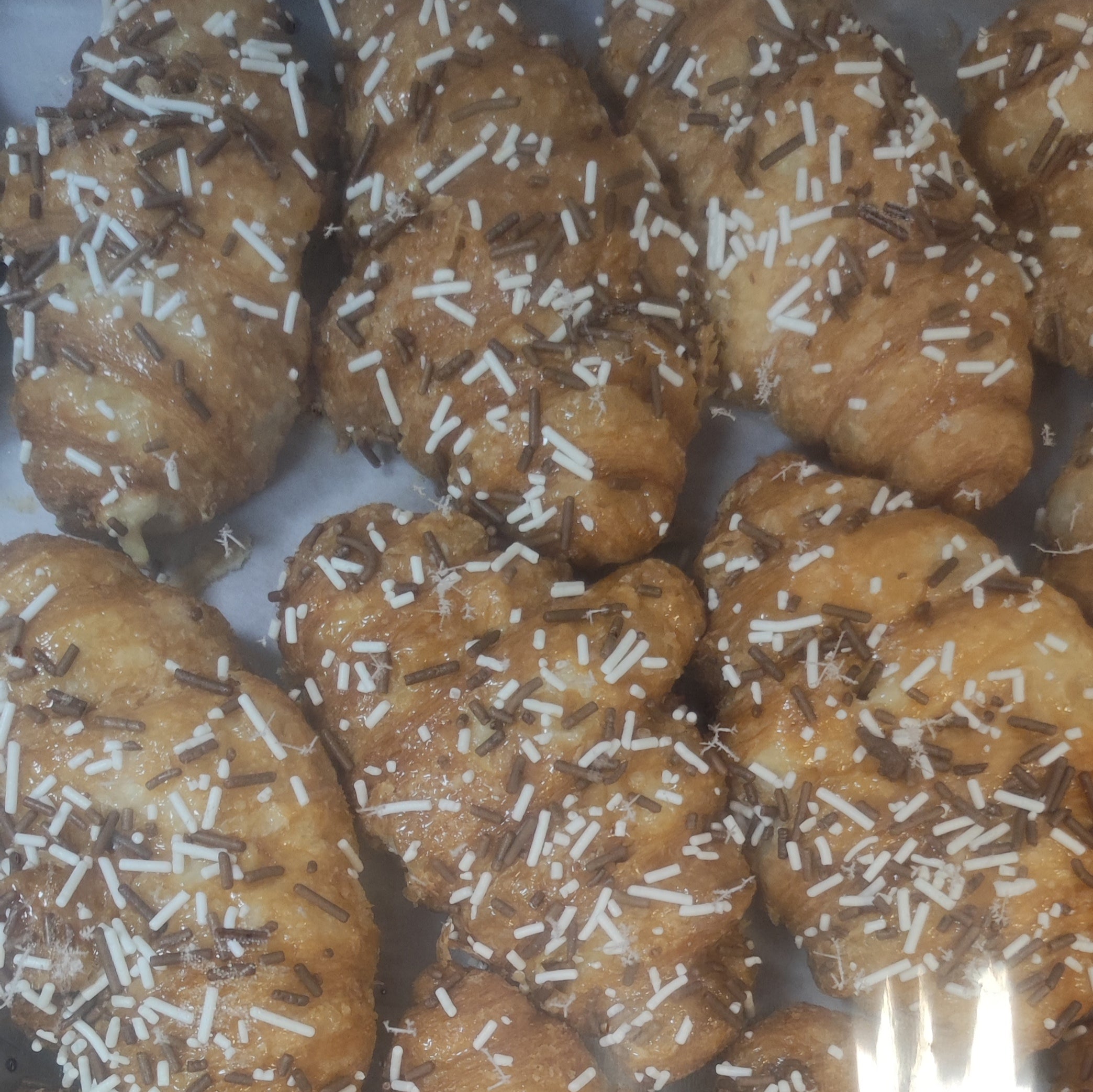 Xuxo relleno de crema de avellana con cobertura de confeti de chocolate. Unidad